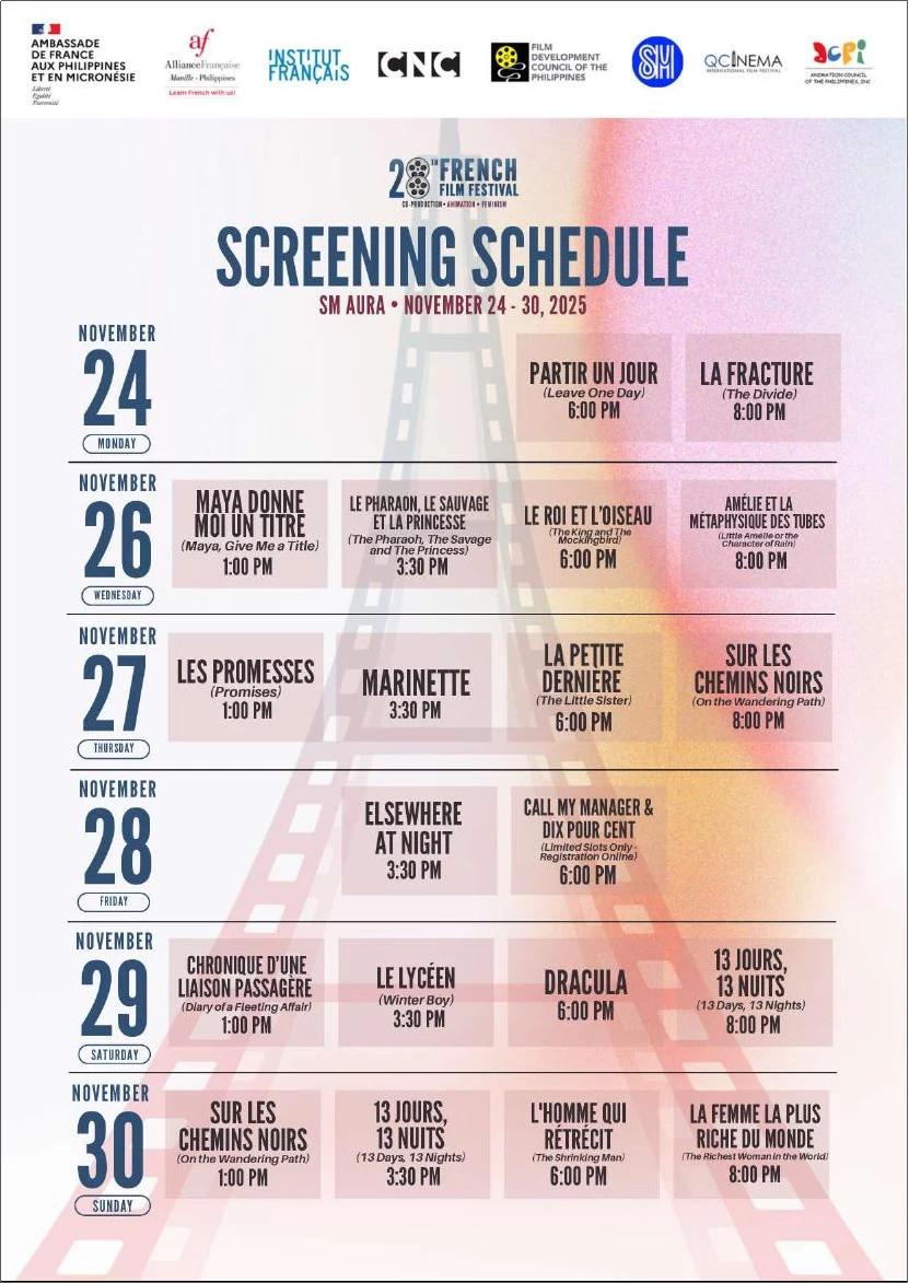 This year, it invites audiences to experience the richness of French cinema, the strength of women’s stories, the promise of French-Filipino co-creation, and the boundless possibilities of animation.