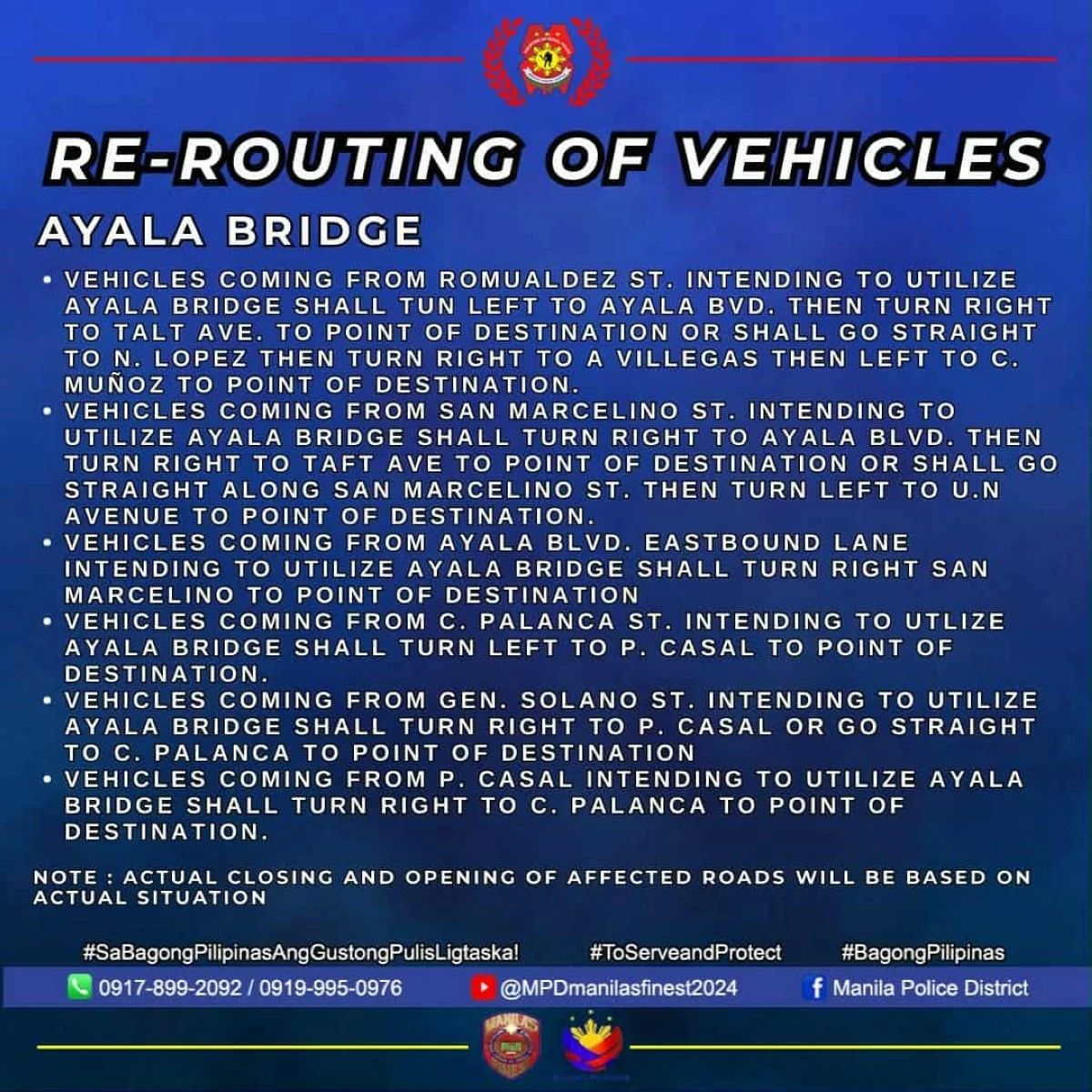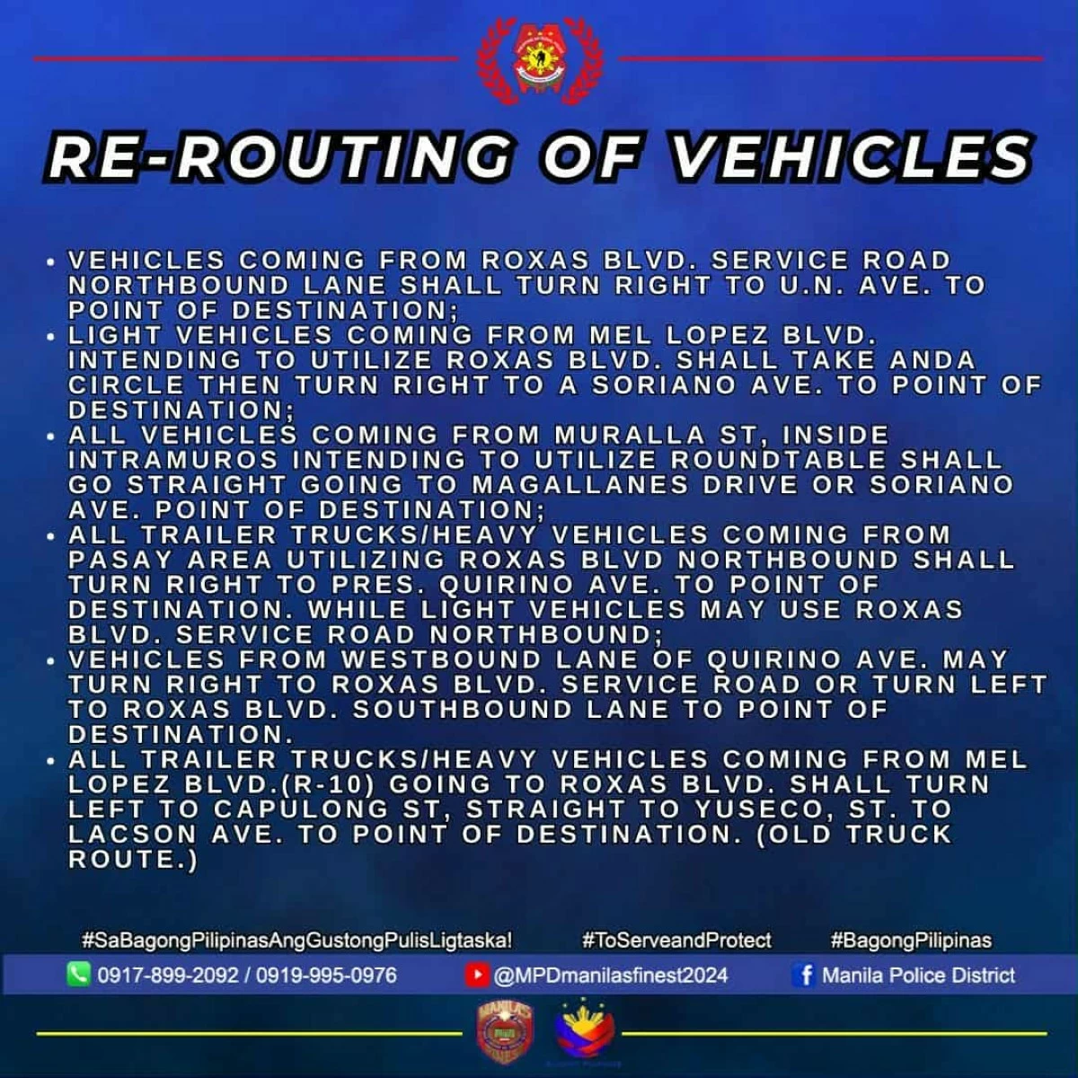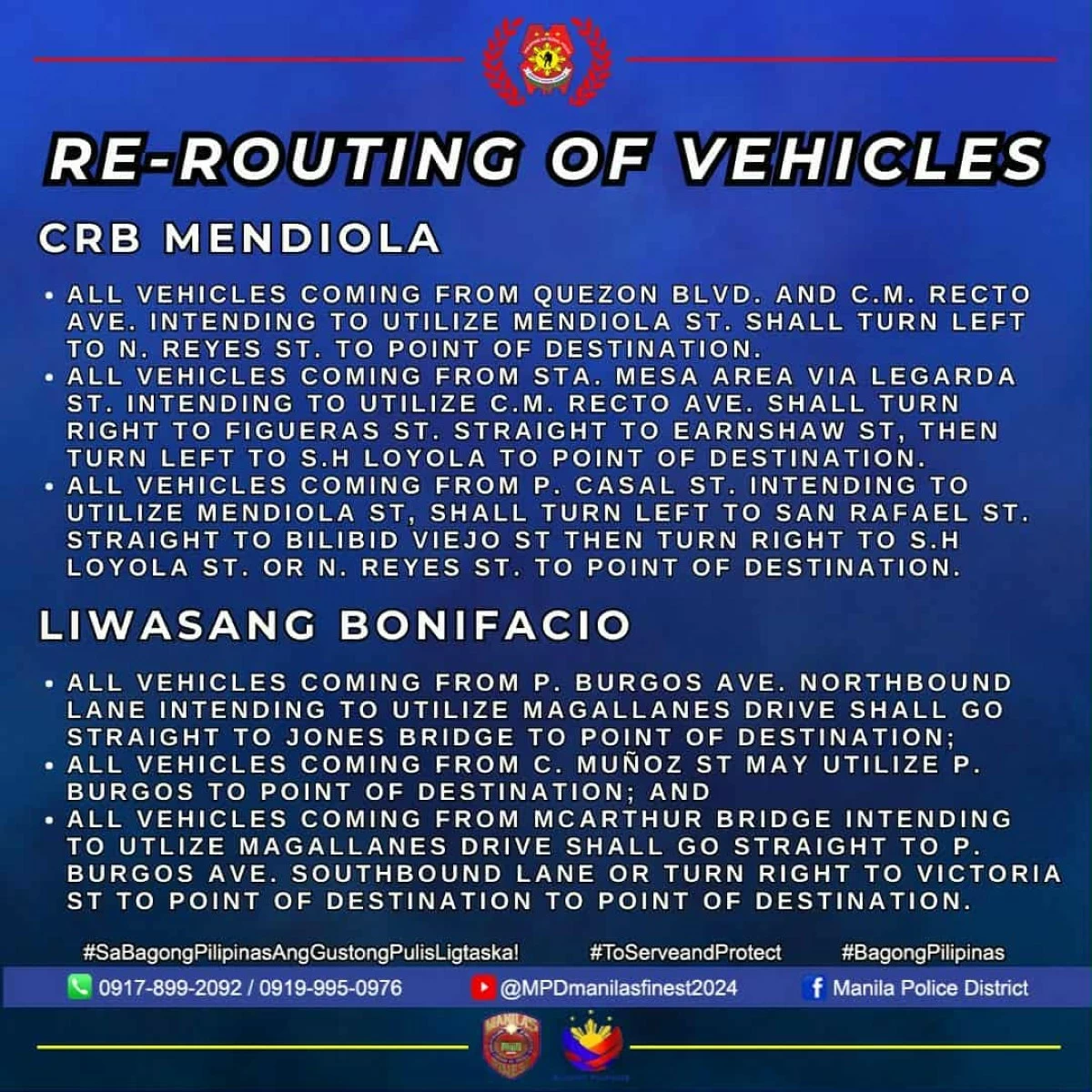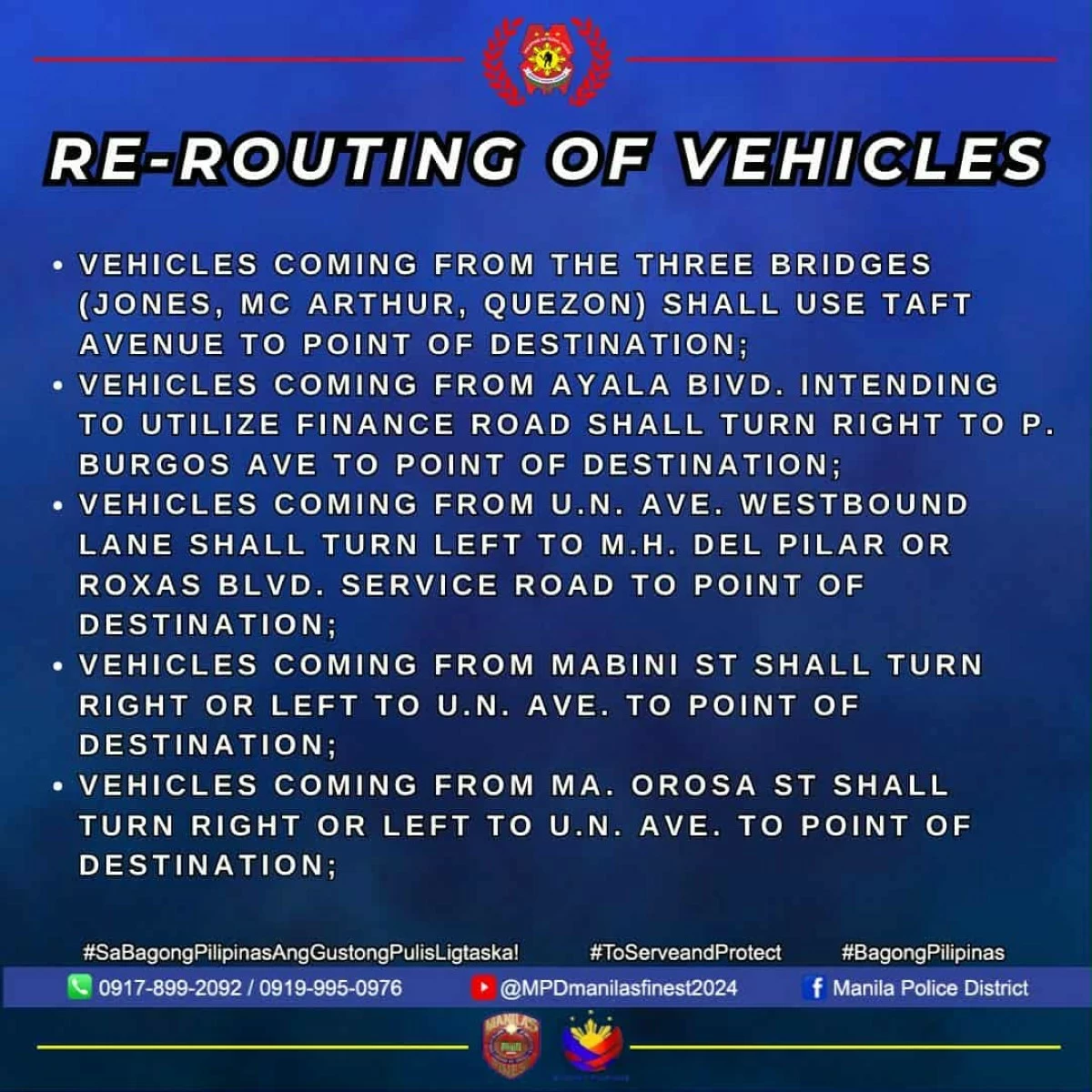 The Manila Police District (MPD) on Friday, Nov. 28, issued a traffic advisory announcing road closures and rerouting schemes for the “Trillion Peso March,” an anti-corruption protest set on Sunday, Nov. 30, which is expected to draw a large crowd.