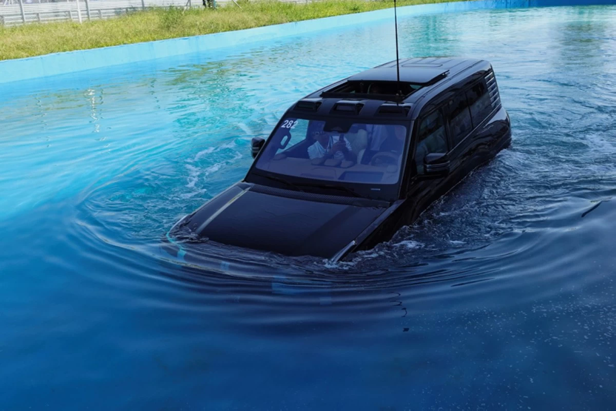 We started with the Yangwang U8. Watching it climb the sand dune was impressive. Watching it float in 1.6 meters of water, propelled by its four wheels, was something else. The SUV moved forward, turned, maneuvered – all while floating – without any water intrusion into the cabin.