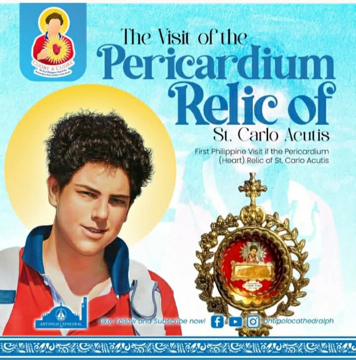 The Antipolo Cathedral announced that the pericardium relic of St. Carlo will arrive at the cathedral at 8 a.m.