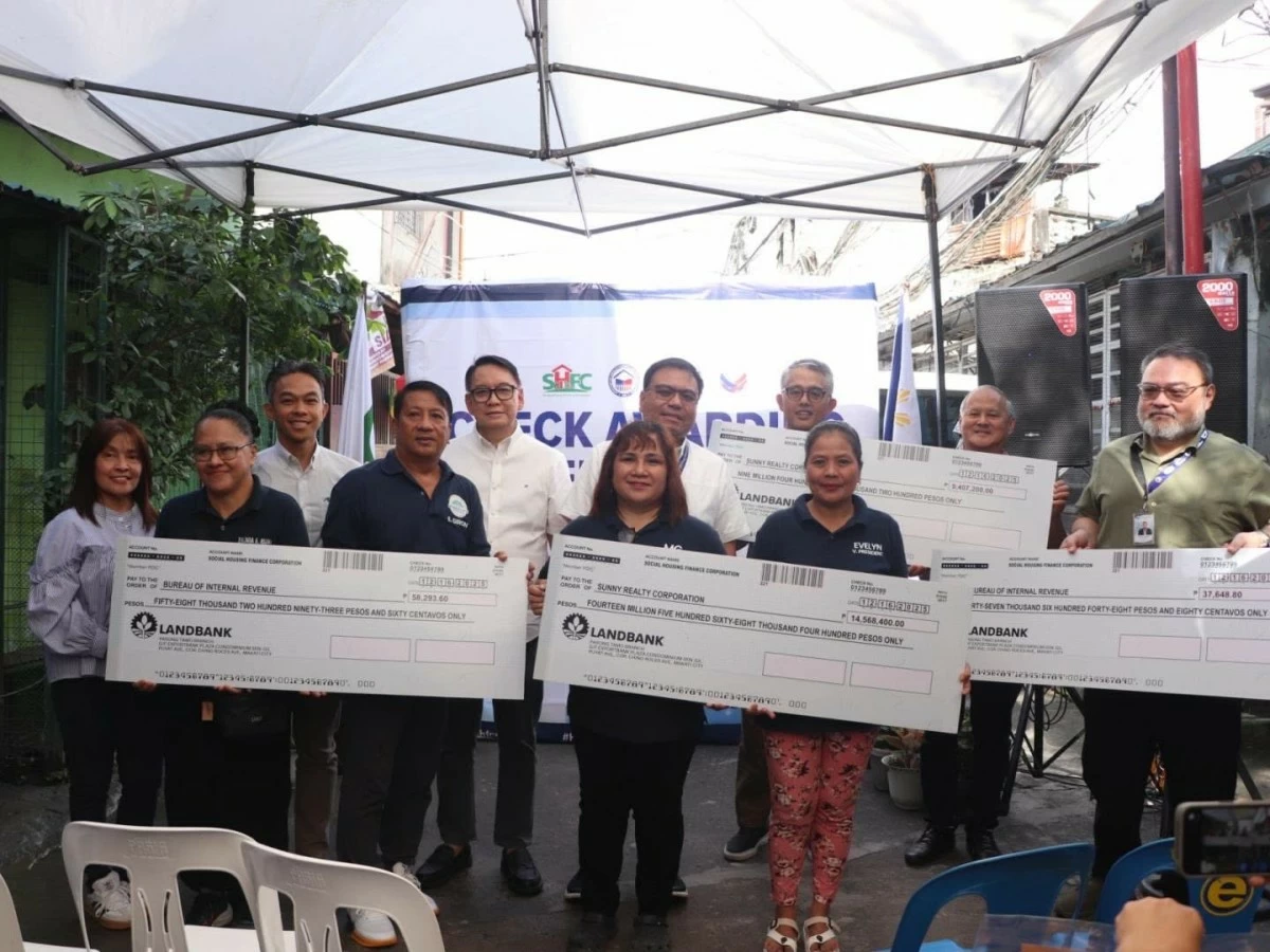 DHSUD Secretary Jose Ramon Aliling and SHFC President and CEO Federico Laxa led the ceremonial turnover of checks worth over P23 million for the acquisition of land in Barangay Pinagbuhatan, where the beneficiaries’ homes currently stand.