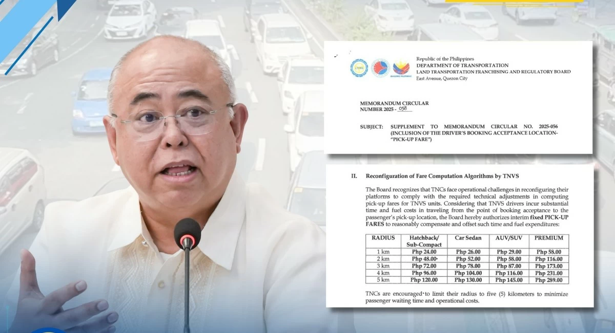 - The LTFRB Memorandum Circular 2025-058 allows Transport Network Vehicle Service (TNVS) the authority to charge their passengers from the moment the booking is accepted up to the time the pick-up location is reached.