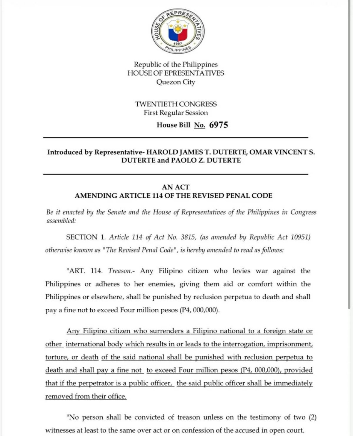 According to the Davao City lawmakers, the proposed measure aims to classify as treason the act of any Filipino citizen who surrenders or facilitates the surrender of another Filipino to a foreign state or international body, resulting in interrogation, imprisonment, torture, or death of the surrendered individual.