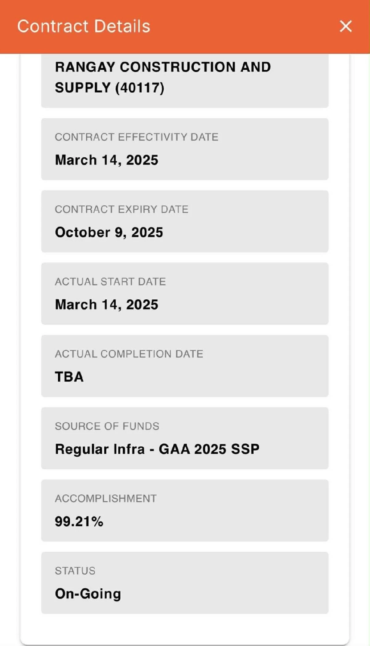 The overall contract is listed as 99.21 percent complete but remains officially tagged as “ongoing,” with the actual completion date still marked as “to be announced.”