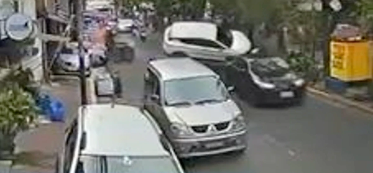 After hitting the pedicab, the SUV struck the center island and then reversed, crashing into two more vehicles, a sedan, and a motorcycle, that were parked along the roadside.
