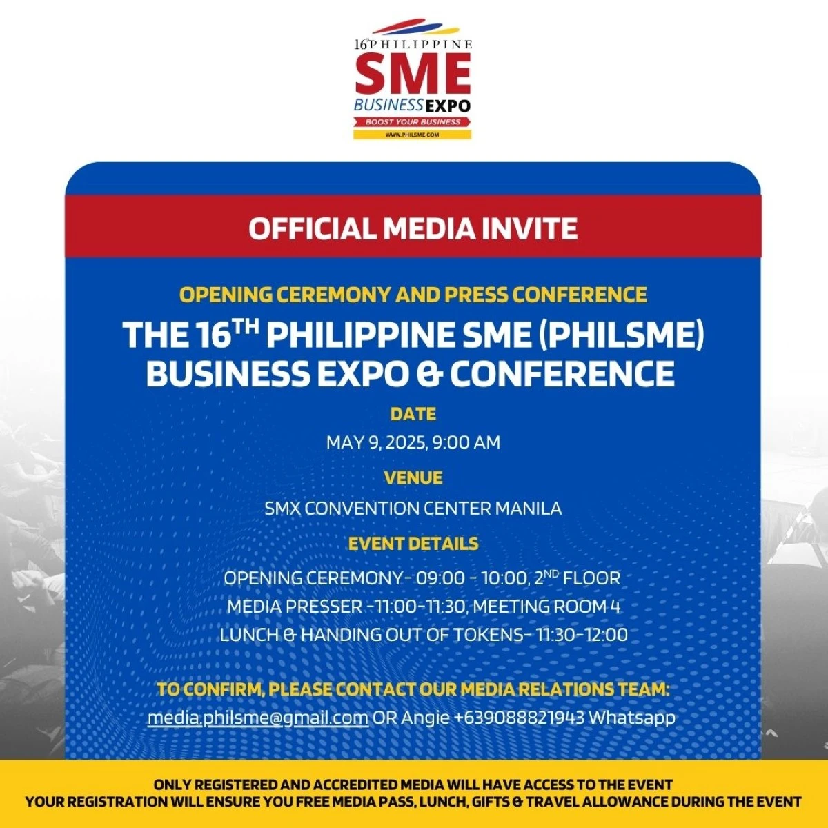 Don’t miss this chance to ignite growth, gain expert insights, and connect with the key players in Philippine business. Secure your tickets now at https://ticket.philsme.com/!