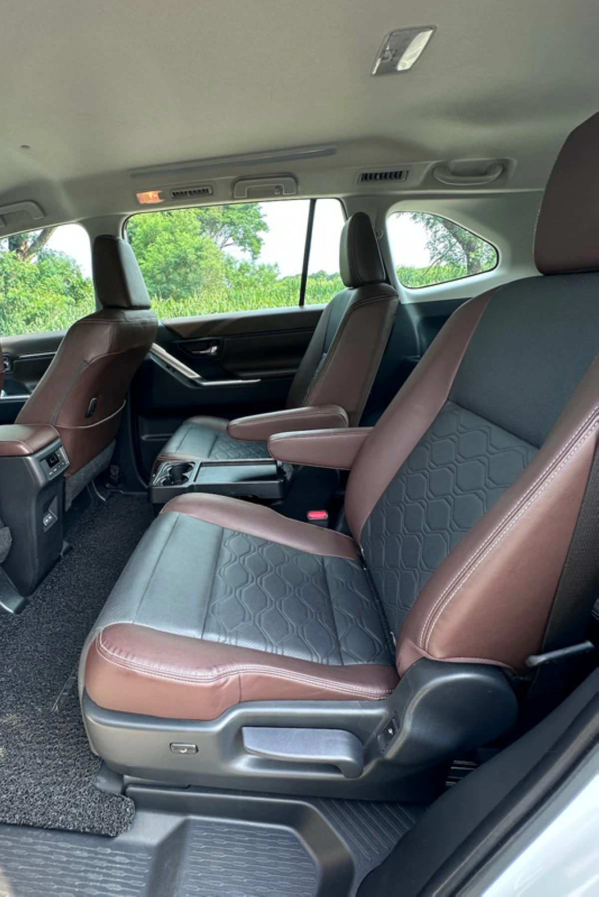 If you’re buying the Zenix, you’d prefer to be driven around because the best seats are in the second row. Here, there are two captain’s chairs with a power ottoman and a power recline feature, a spacious center console with two cupholders, ambient lighting at the top, and two more USB ports. It is important to note that, unlike the Innova, these two seats in the middle are not removable, so you can’t expand cargo space all the way to just behind the front row.