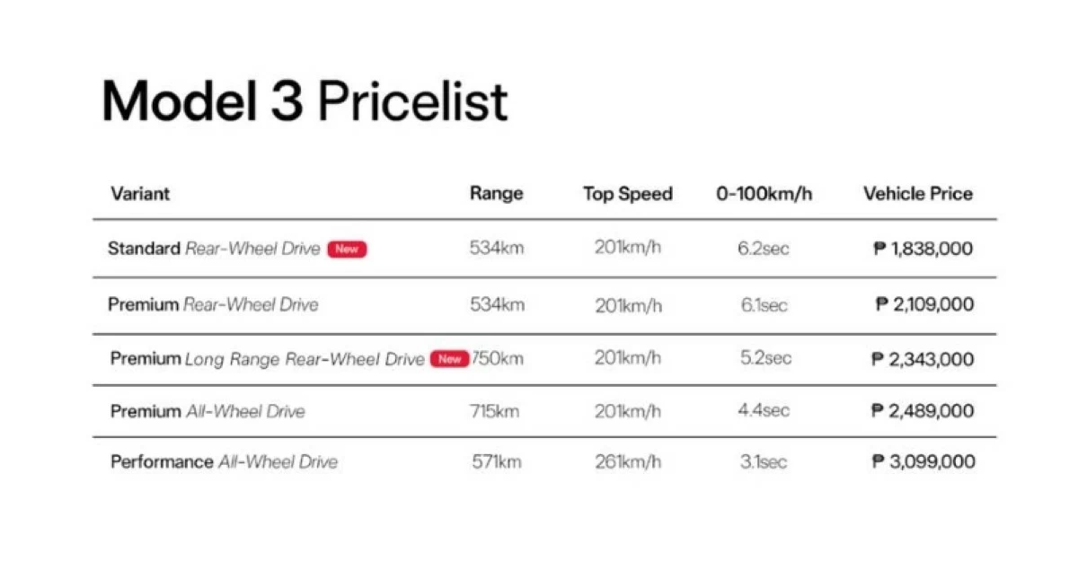 - Tesla is promoting lower entry pricing for EV ownership in the Philippines, with the Model 3 Standard priced from ₱1.838 million and monthly payments starting at ₱29,990.