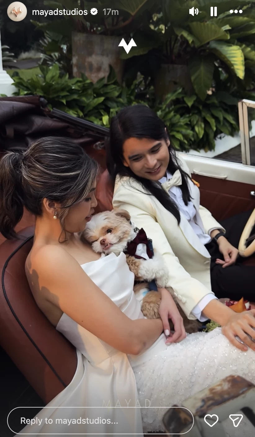 Paolo wore a white tuxedo, while Rachel wore a white gown at the wedding. They also posed with their pet dog.