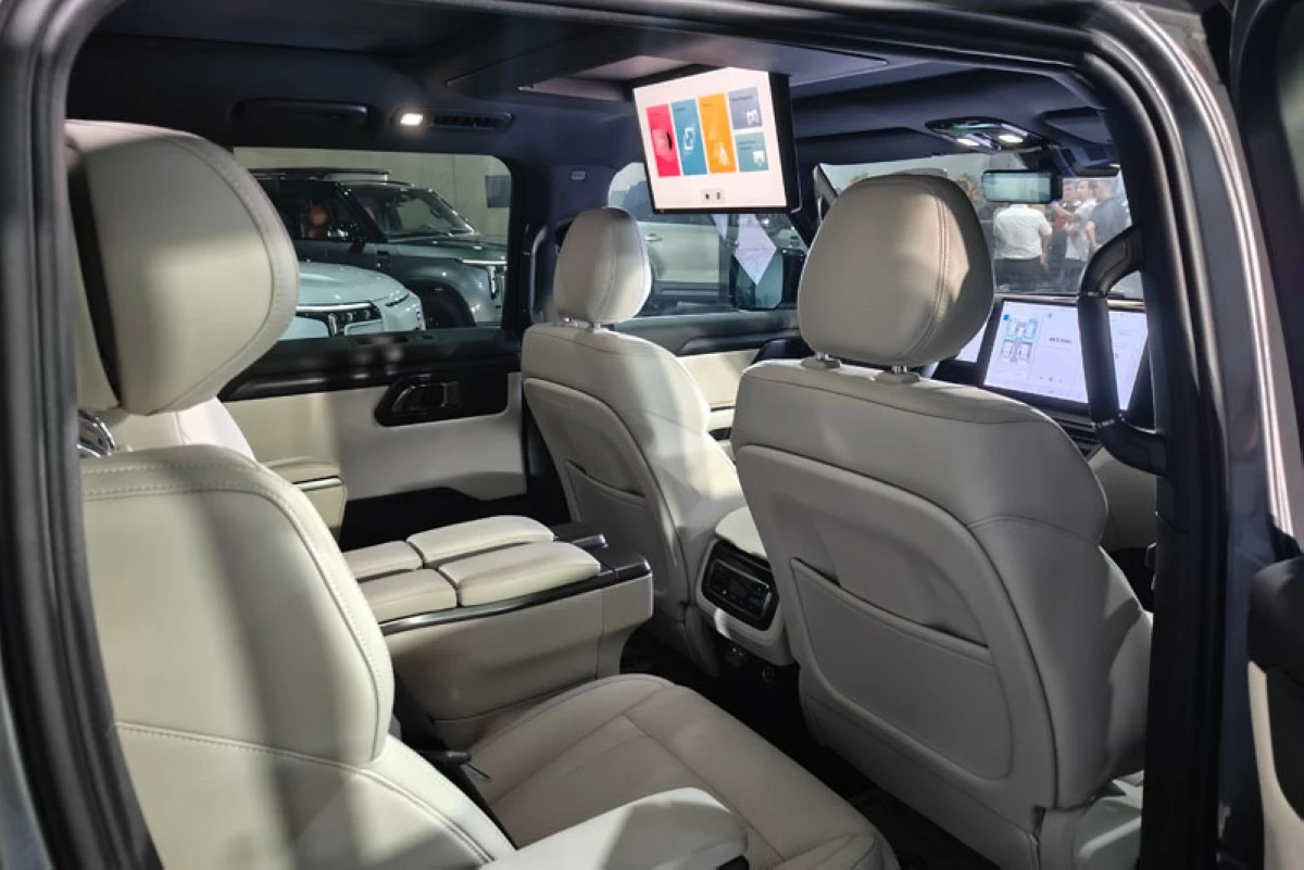 Inside, the Rox is offered with a choice of tan, black, or white Nappa leather upholstery. The seats are designed to reduce fatigue on long drives. Captain chairs are also fitted in the middle row as standard. The dashboard features a large 12.3-inch digital instrument panel, a 15.7-inch central infotainment touchscreen, as well as a 9-inch monitor at the second row.