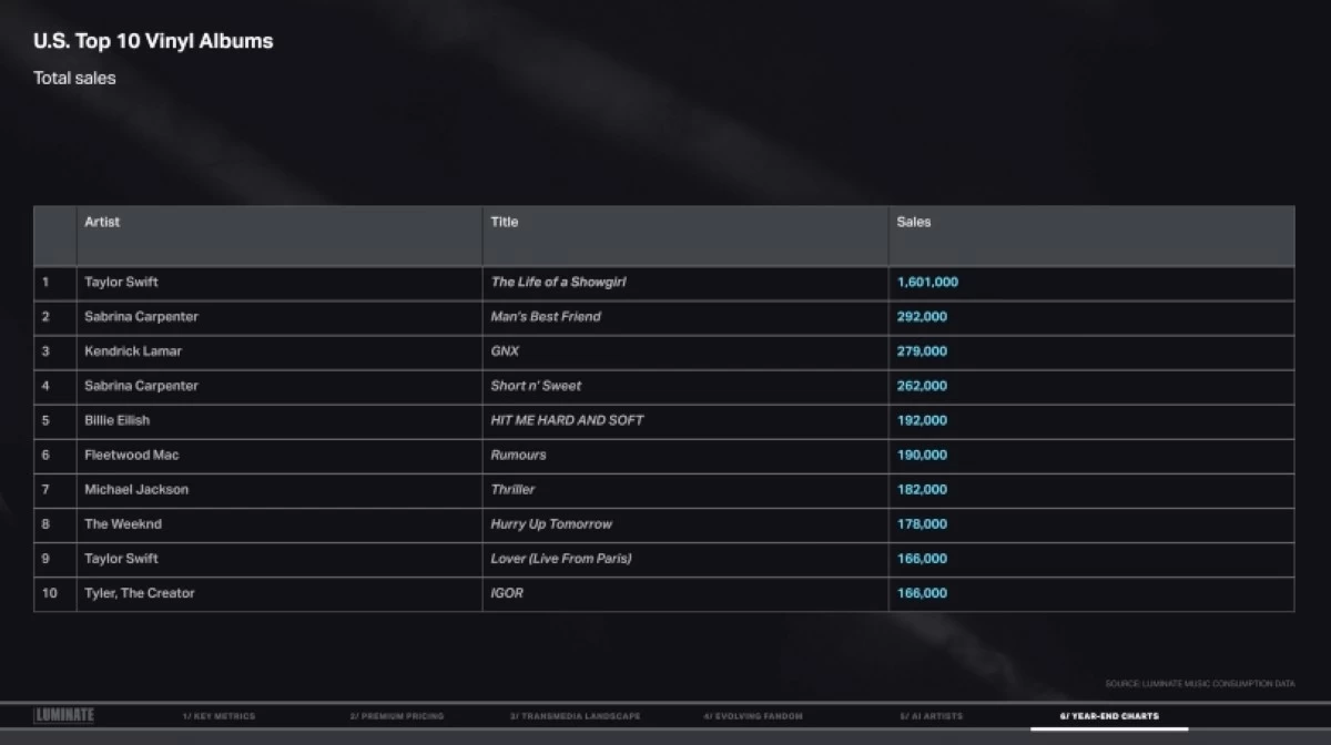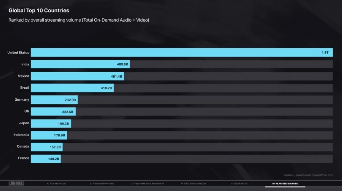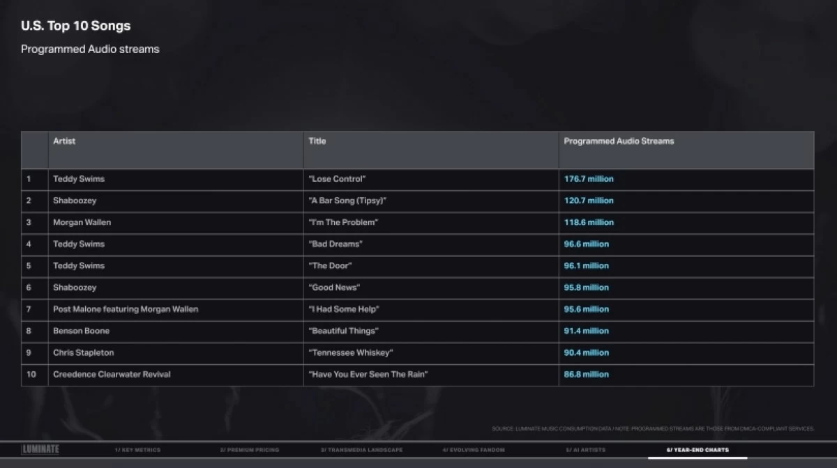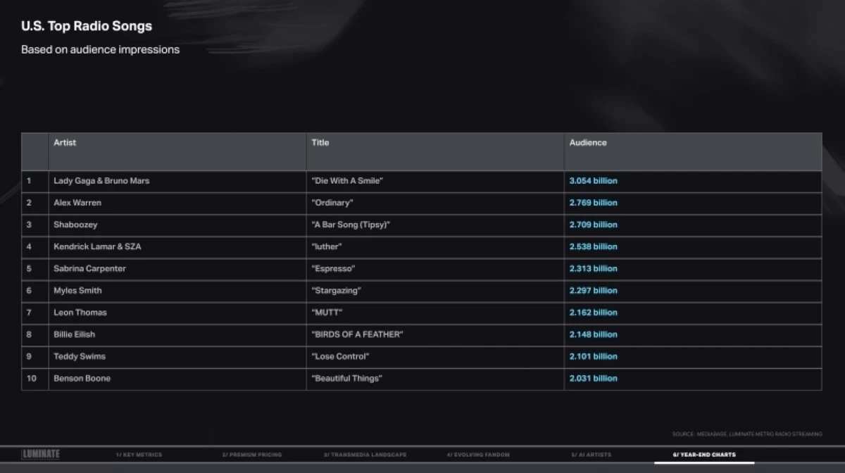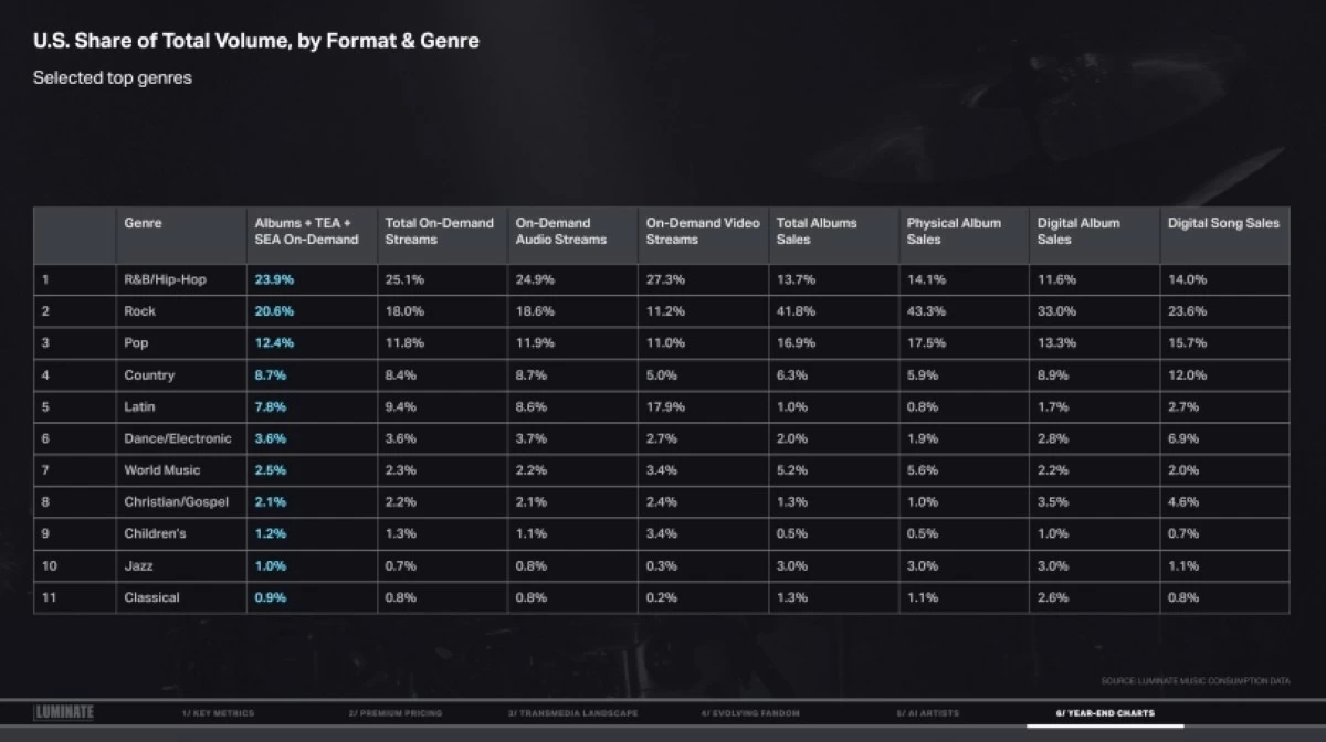 Here are the year-end charts from Luminate’s 2025 Year-End Music Report: