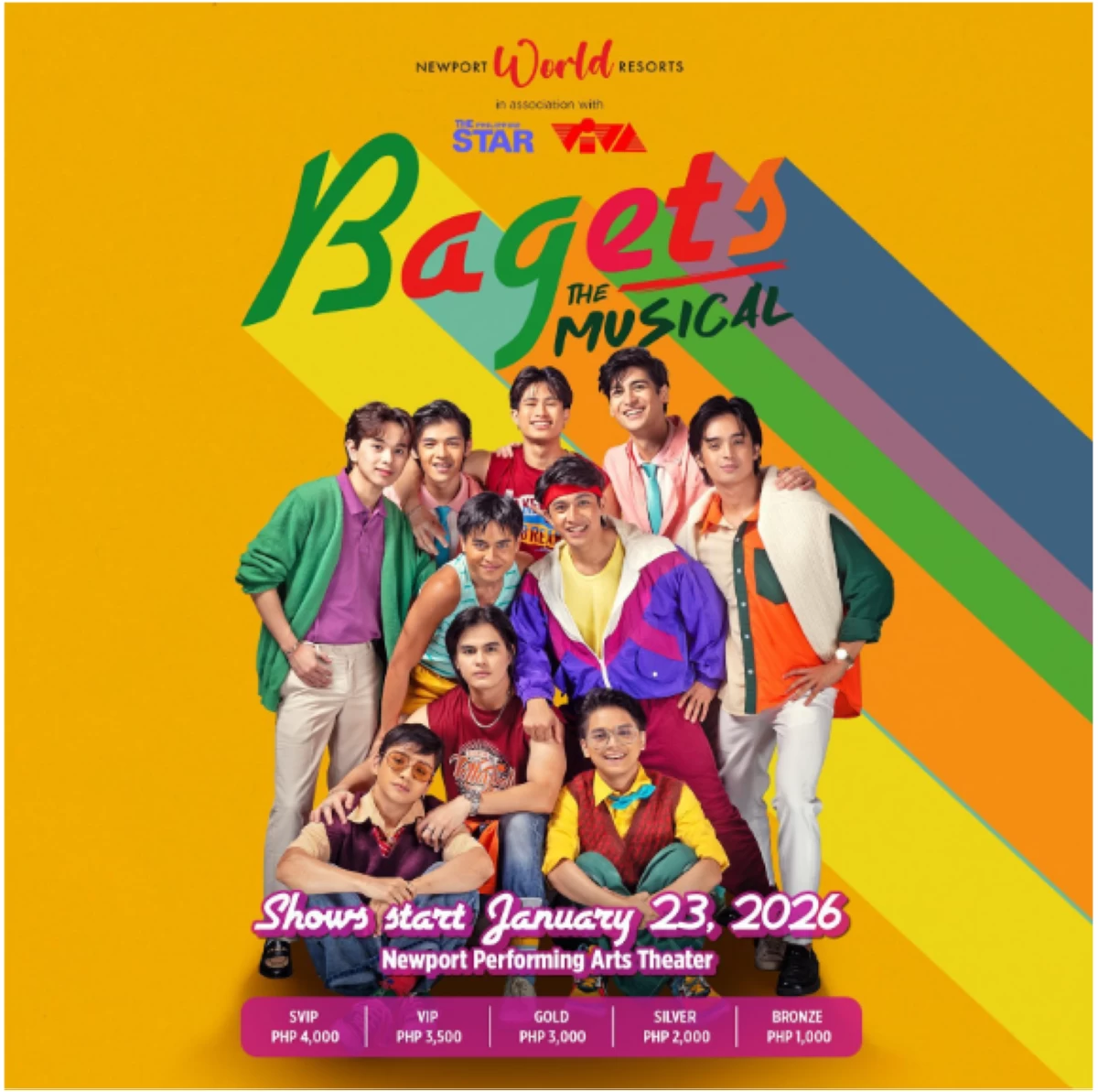 A sense of rediscovery takes center stage with “Bagets The Musical,” which brings a familiar story back into the spotlight for both new and returning audiences. Running from Jan. 23 to March 2026 at the Newport Performing Arts Theater, the production adapts the iconic film for the stage, inviting longtime fans to revisit a beloved story while introducing a new generation to its coming-of-age narrative. Tickets are available at the Newport World Resorts Box Office and TicketWorld, priced at ₱4,000 (SVIP), ₱3,500 (VIP), ₱3,000 (Gold), ₱2,000 (Silver), and ₱1,000 (Bronze). For inquiries, contact Customer Care at 7908-8888.