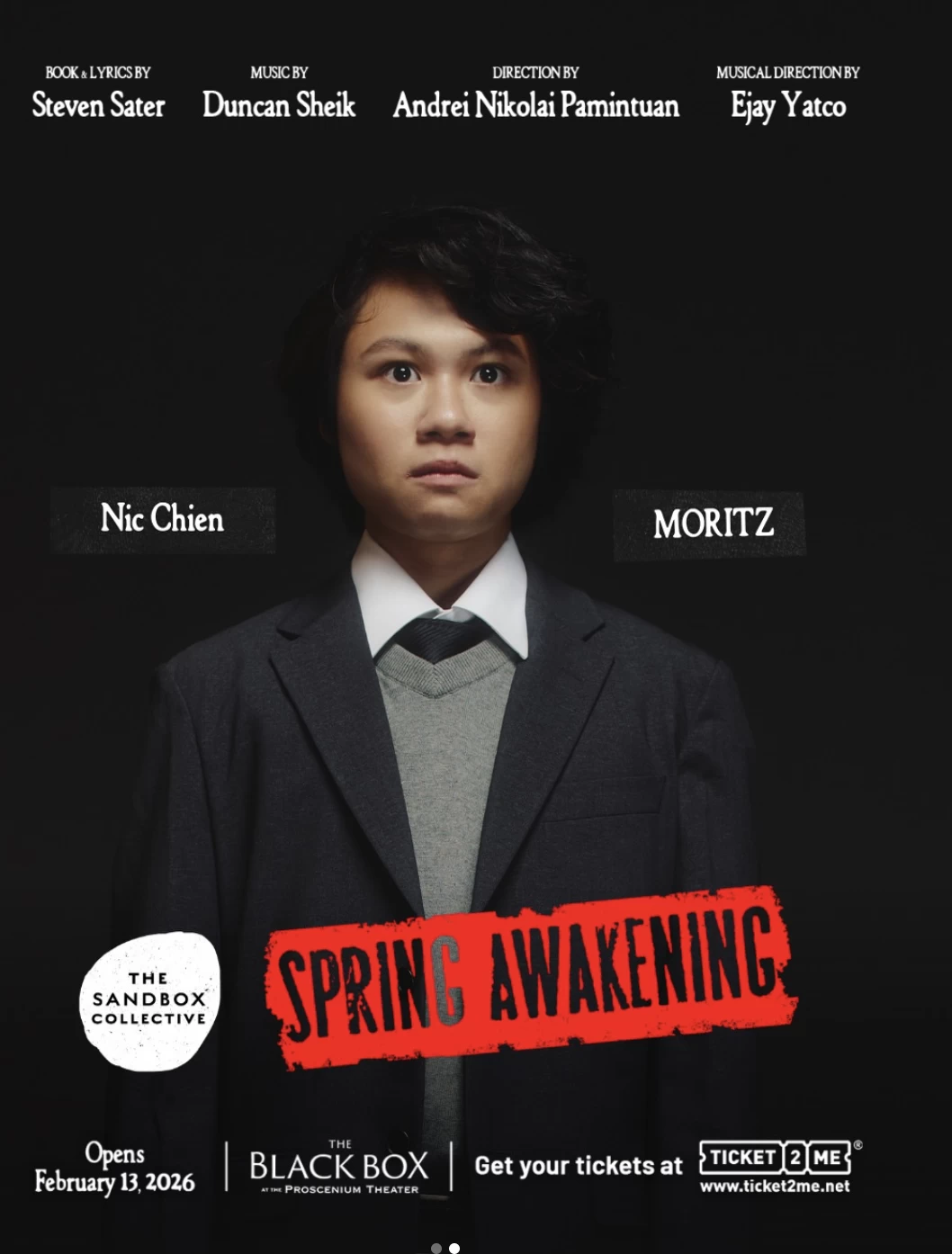 "Spring Awakening" is the inaugural show of The Black Box at The Proscenium Theater in Rockwell, Makati. The show will run from Feb. 13 until March 22, 2026. Tickets are now available on Ticket2Me (tinyurl.com/SandboxSpring2026).