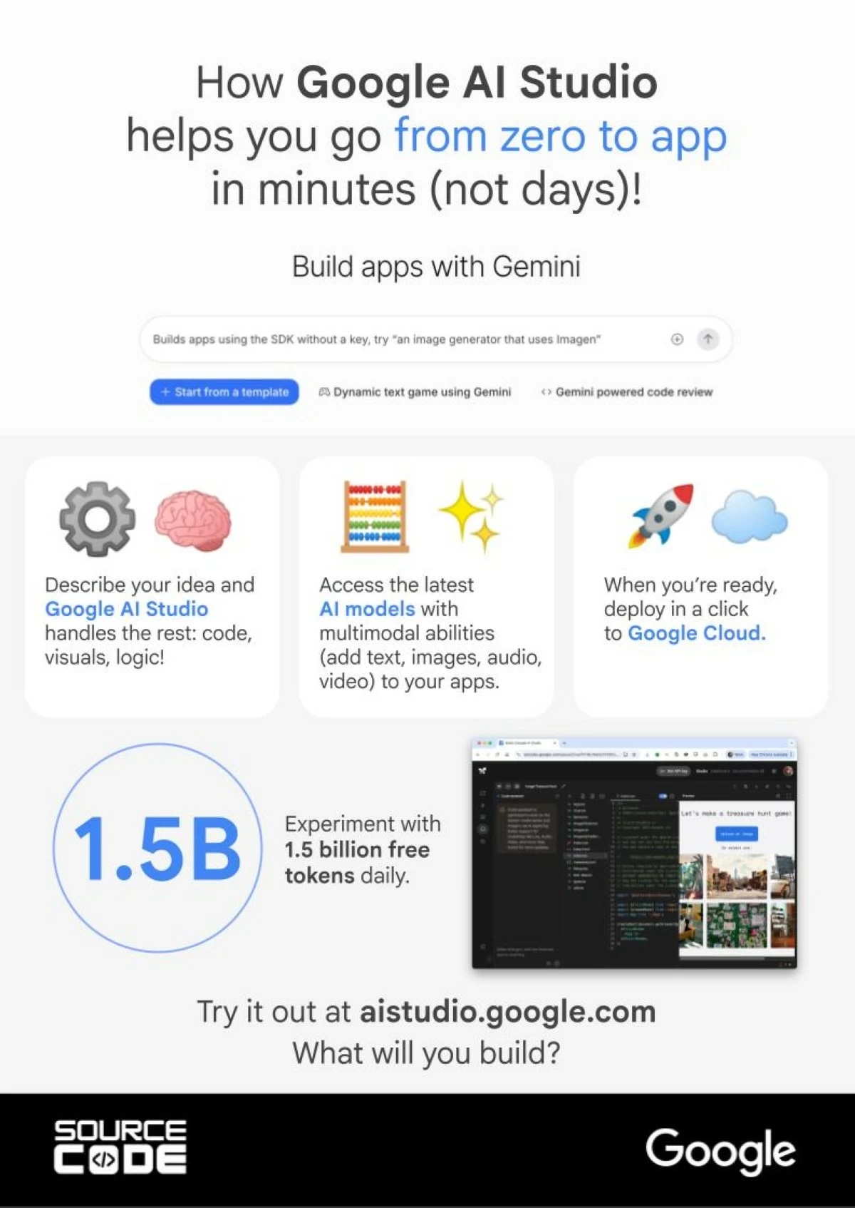 Go to the site: No need to download complex software, just visit aistudio.google.com and start describing your idea, in your natural language, and ask AI to code.