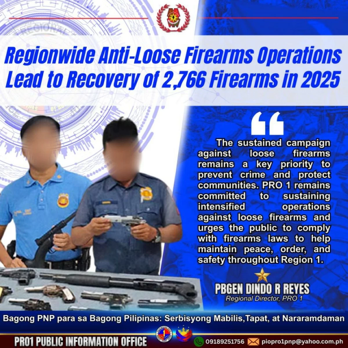 “The sustained campaign against loose firearms remains a key priority to prevent crime and protect communities. PRO-1 remains committed to sustaining intensified operations against loose firearms and urges the public to comply with firearms laws to help maintain peace, order, and safety throughout Region 1.”