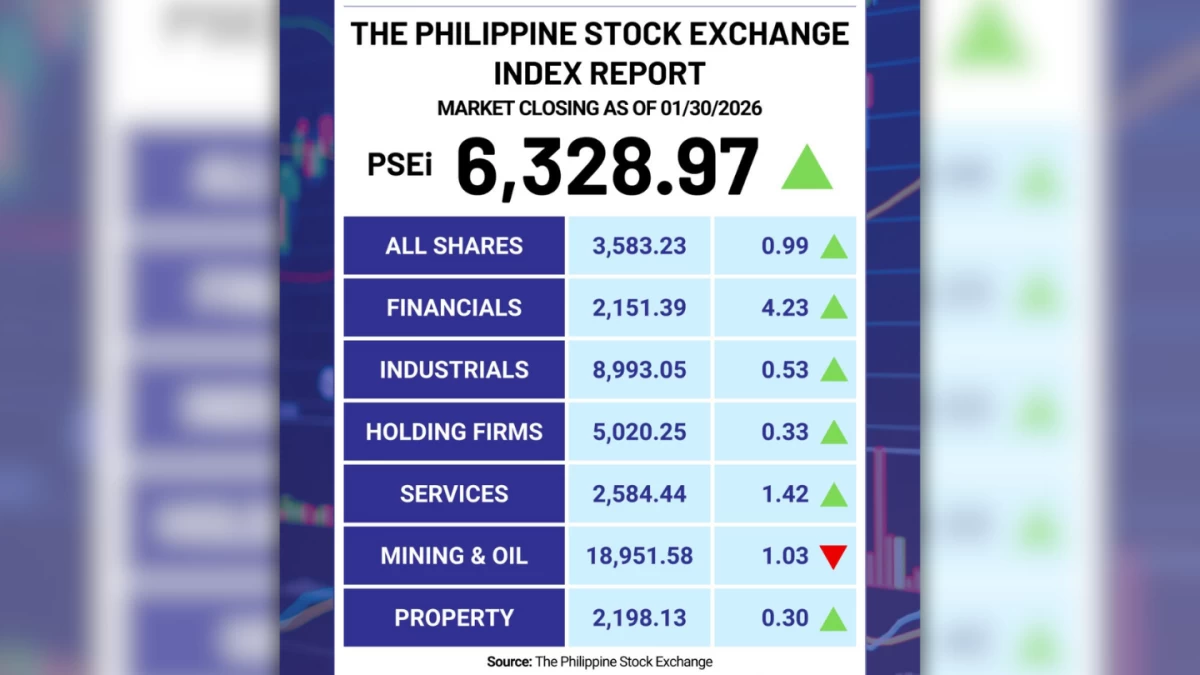 The Philippine Stock Exchange index (PSEi) on Friday, Jan. 30, bounced and recovered most of the previous day’s losses as the lower economic growth rate may lead to another policy rate cut.