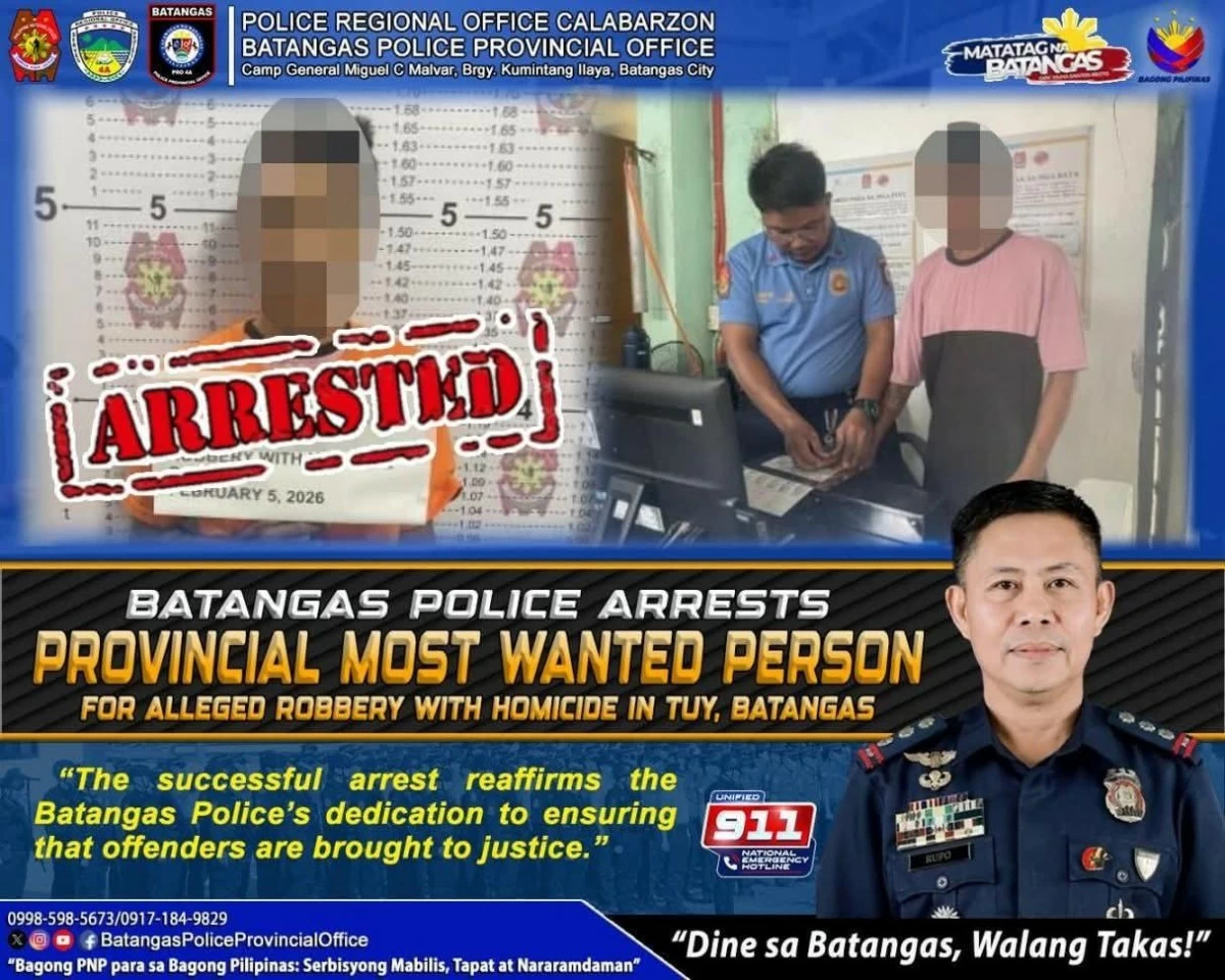 “The successful arrest reaffirms the Batangas police’s dedication to ensuring that offenders are brought to justice. We assure the public of our steadfast commitment to peace, order, and the rule of law,” said Police Col. Marlon Rufo, Batangas police director.