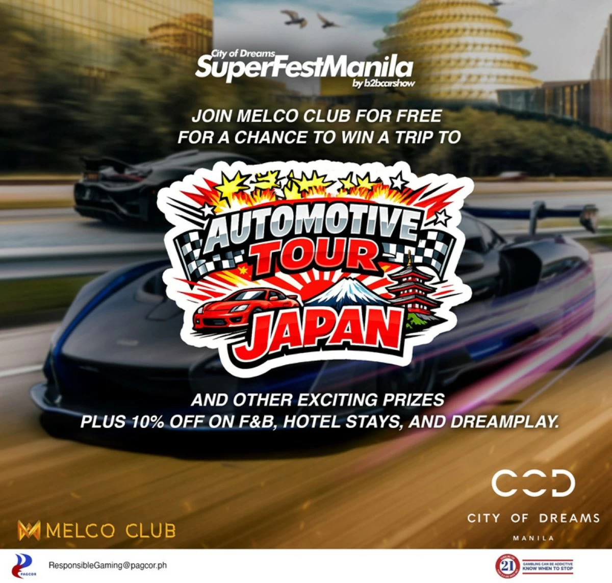 Engines are roaring once again as 2026 Superfest Manila, presented by Bumper to Bumper Car Show, returns for its third year at City of Dreams Manila. Happening this weekend, this annual showcase will have 80 standout vehicles, interactive activities and a chance to win the raffle draw grand prize for an all-expense paid trip to Japan by Autotour Japan, including an automotive tour. Participation in the raffle is exclusive for Melco Club members.