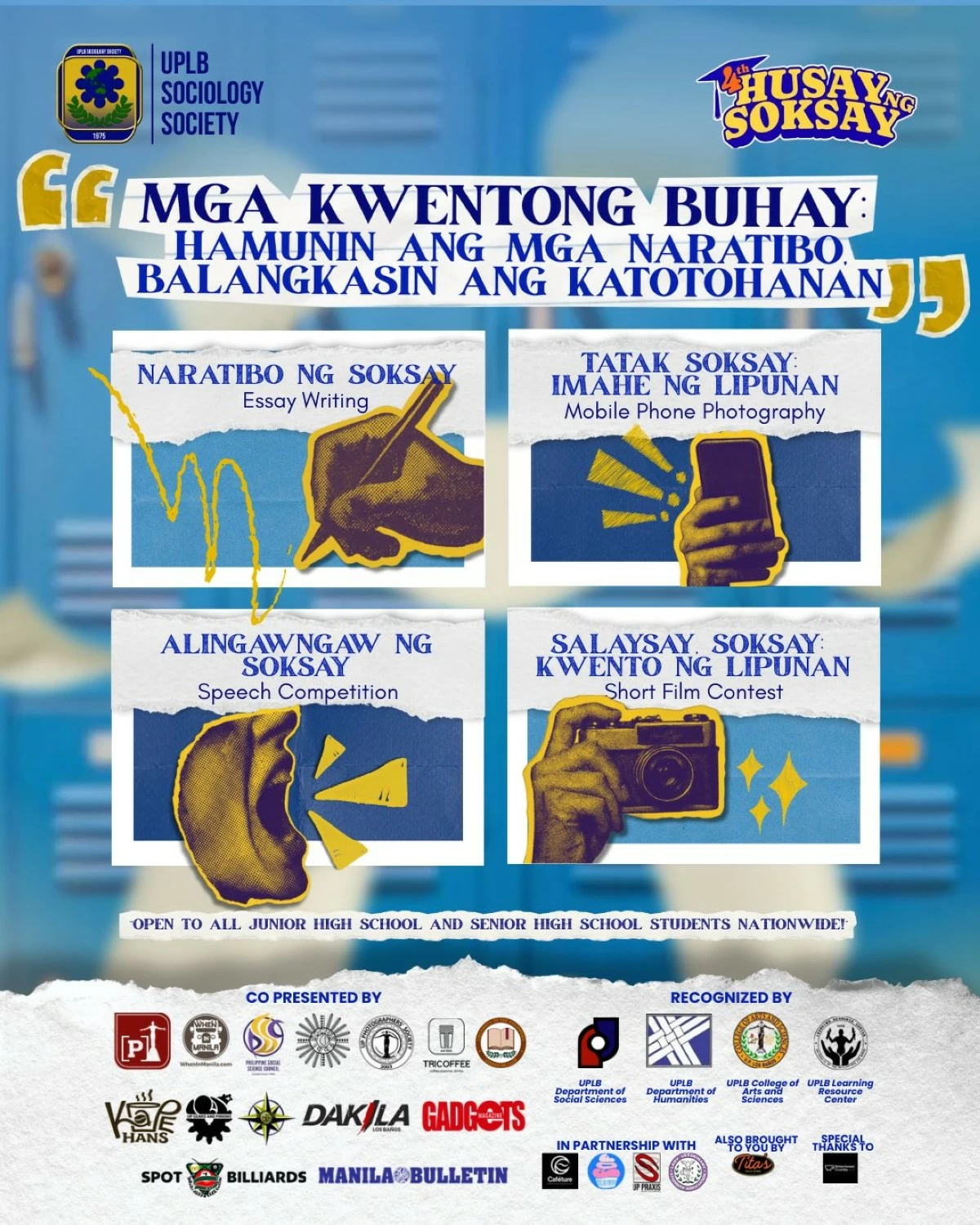 If you want to participate in the 4th Husay ng SokSay competition, you may register until February 13, 2026, at the Husay ng SokSay-UPLB Sociology Society Official Facebook Page using this link: https://tinyurl.com/4thHusayngSokSayRegistration.