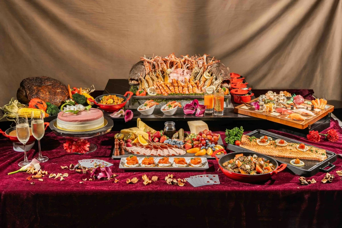 At Brasserie on 3, the All-in For Love dinner buffet runs from Feb. 13 to 15, priced at P5,588 nett per person for veranda seating and P4,588 nett indoors. The spread includes prime rib, crusted baked salmon fillet, seafood selections, salads and Valentine’s-themed cakes and desserts. Unlimited house beverages for two hours and live romantic performances complete the evening. A lunch buffet is available Feb. 14 and 15 at P3,188 nett per person.