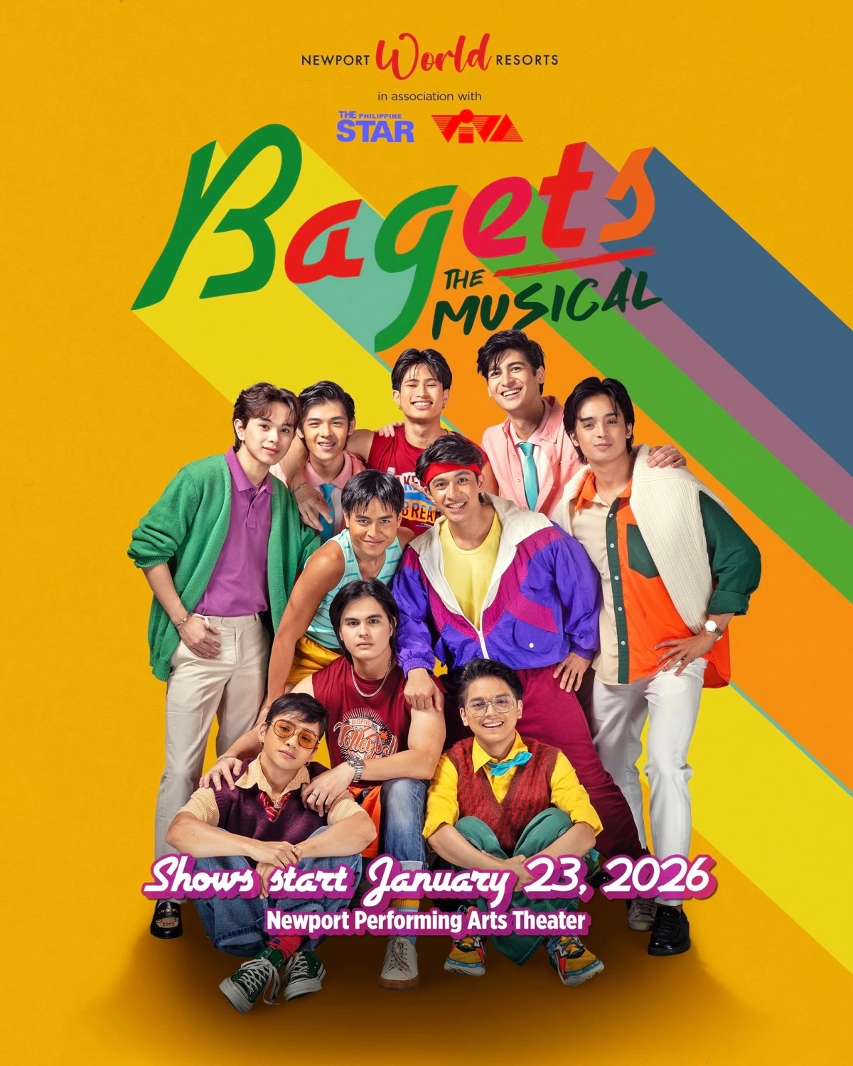 The iconic ’80s barkada takes the stage in Bagets The Musical, opening the year at the Newport Performing Arts Theater. The show reimagines the 1984 coming-of-age film through music and live performance. With a younger cast taking on the familiar story, the production leans into themes of friendship, first love, and growing pains—now filtered through theater spectacle and OPM-driven nostalgia.