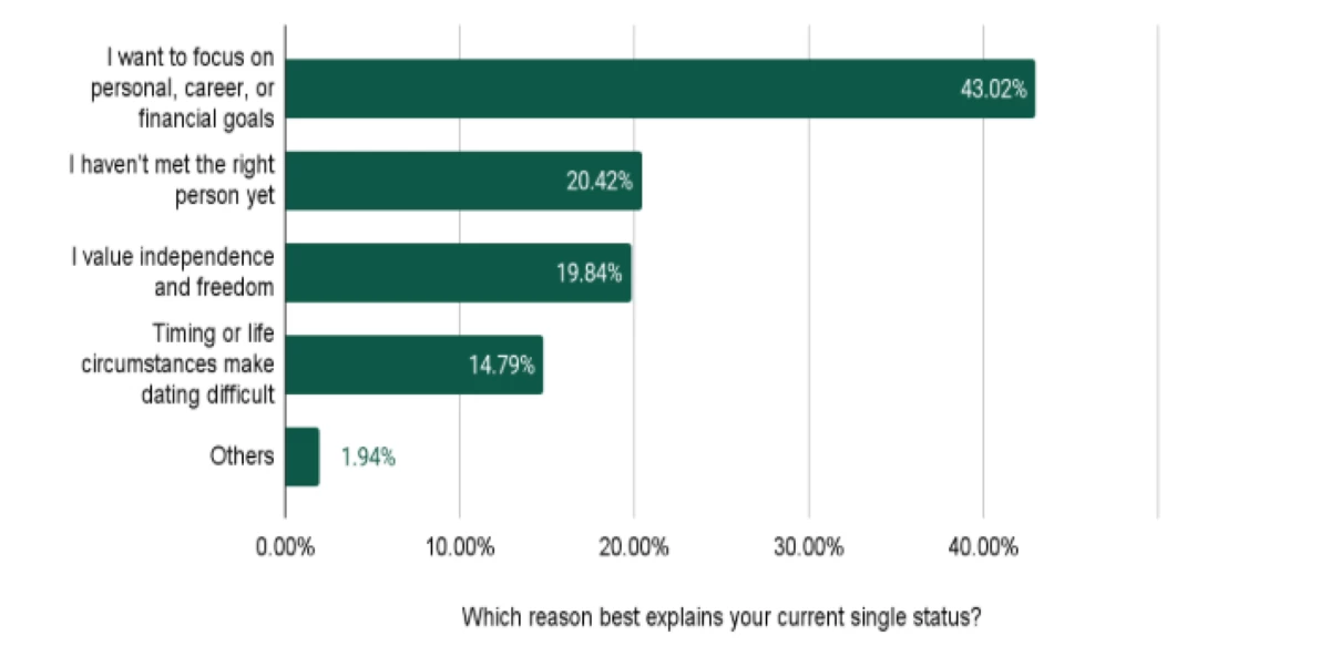 Partnership is no longer treated as a prerequisite for adulthood. Instead, many respondents appear to be treating relationships as something that should align with their trajectory, not interrupt it.