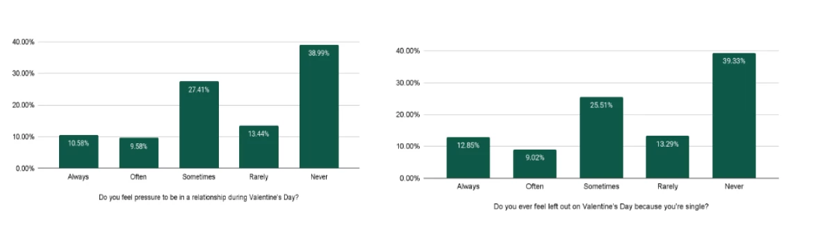 There are still traces of social pressure. About 27 percent say they sometimes feel pushed to be in a relationship during Valentine’s Day. Among singles, 26 percent admit they occasionally feel left out.