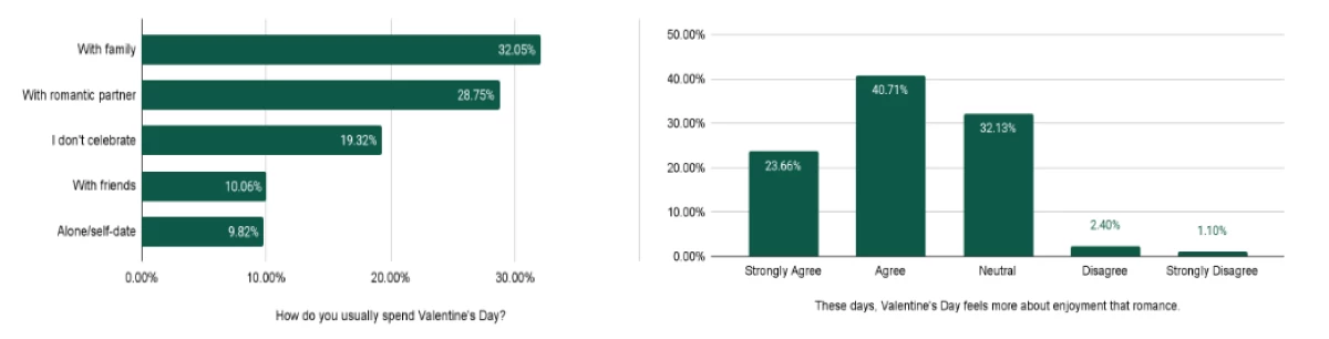 Despite Valentine’s Day’s commercial and social intensity, emotional reactions are surprisingly subdued. The data show that 66 percent of respondents feel neutral as the holiday approaches.