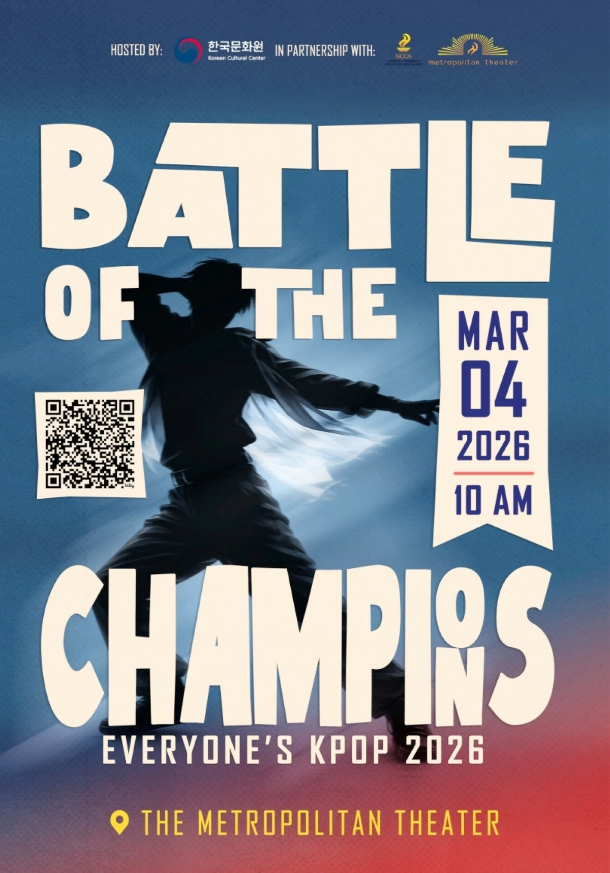 The Korean Cultural Center (KCC) in the Philippines will hold the “Everyone’s KPOP: Battle of the Champions” on March 4 at the Metropolitan Theater in Manila in partnership with the National Commission for Culture and the Arts (NCCA).