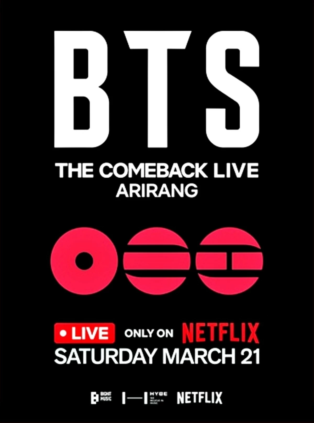 The following day, the “BTS The Comeback Live Arirang” at Gwanghwamun Square in Seoul, which will be live streamed exclusively on Netflix.
