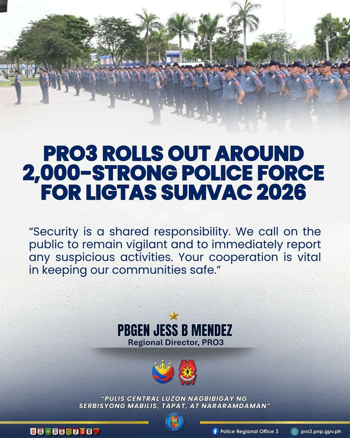 The Police Regional Office-3 is set to deploy 2,000 police personnel in Central Luzon to ensure a safe, orderly, and secure summer vacation under Ligtas Sumvac 2026.