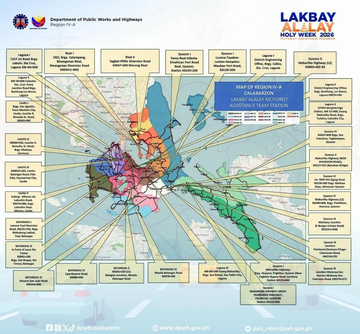 CALAMBA CITY, Laguna – The Department of Public Works and Highways Region 4-A has reactivated the Lakbay Alalay 2026 motorist’s assistance program for the Holy Week.