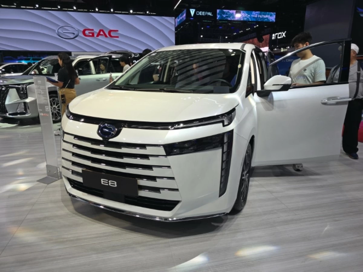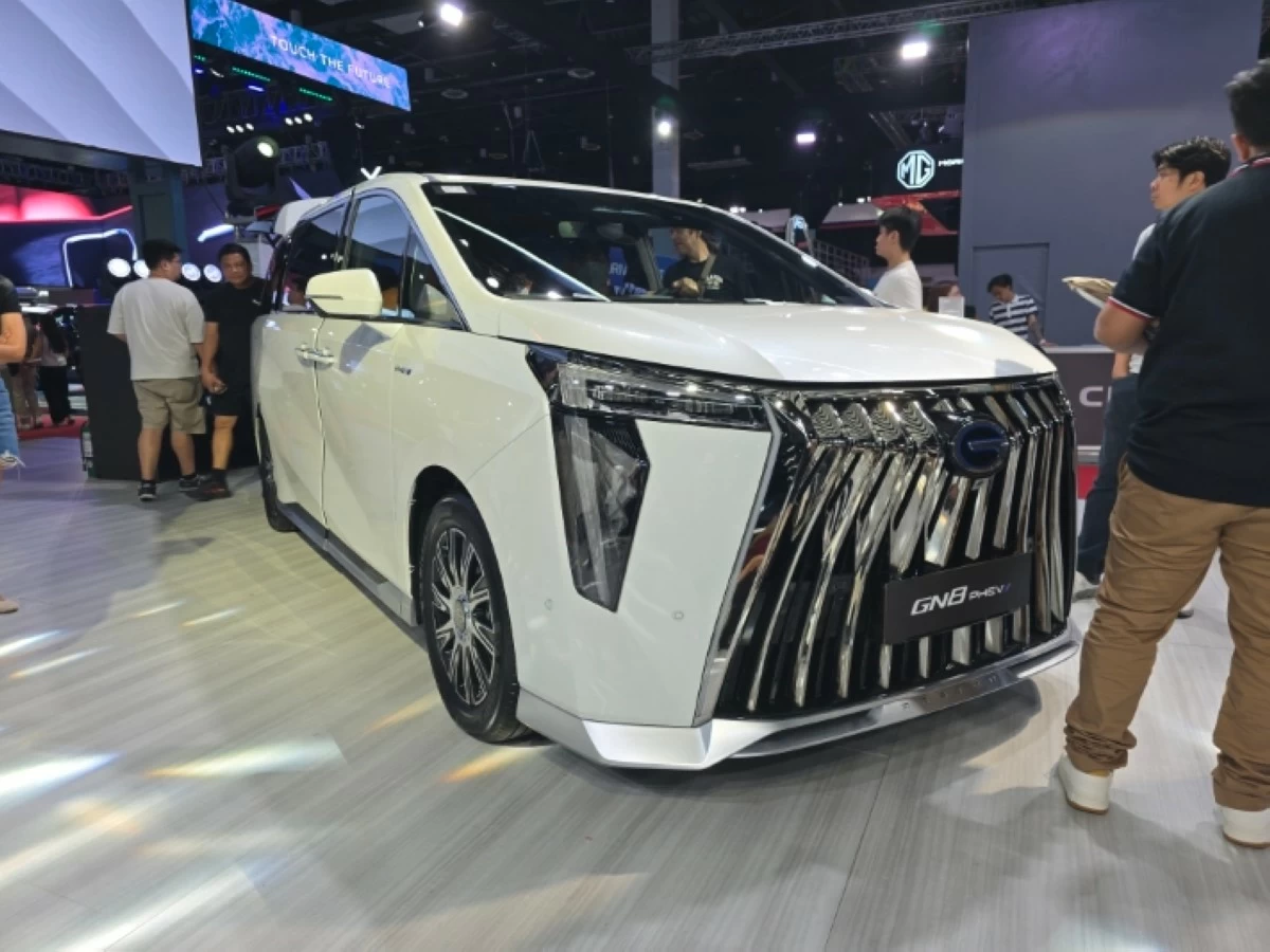 - The lineup on the floor also included the GN8 PHEV, HYPTEC HT, AION V, EMKOO Hybrid, M6 Pro, and EMZOOM, while the E8 HEV appeared as a preview.