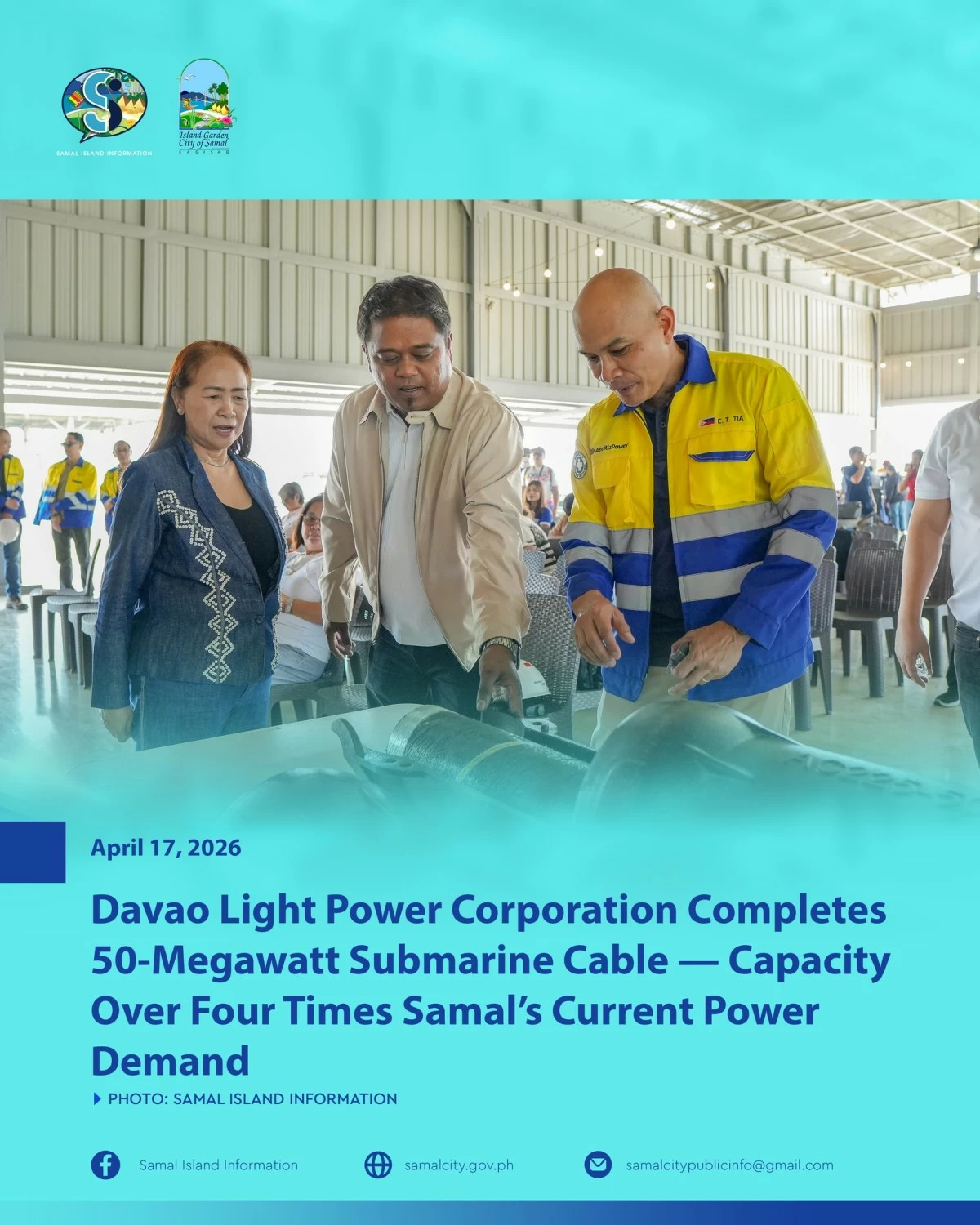 DAVAO CITY – The Island Garden City of Samal (IGACOS) government is optimistic that the recent inauguration of the 50-megawatt Davao-Samal submarine cable interconnection could boost the economic growth of the island.