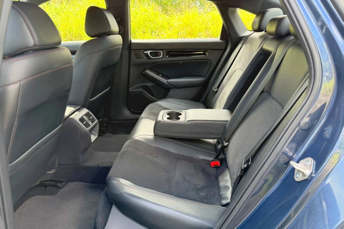 The Civic RS e:HEV I had the opportunity to spend a few days with, came in a new color called Canyon River Blue Metallic. This variant has an updated front end over the RS turbo that came before it. It’s got a more aggressive front end, a sharper face, and the lower air dam with a wider opening. Doors get new glossy black chrome door handles and around the rear, the taillights get black tinted lenses. It rolls on new Advanced Sport seven-spoke 18-inch matte grey alloy wheels wrapped in 235/40ZR18 95Y tires. The Z rated tires are rated for a maximum speed of up to 300-kilometers per hour, not that you want to be going that fast anyway.